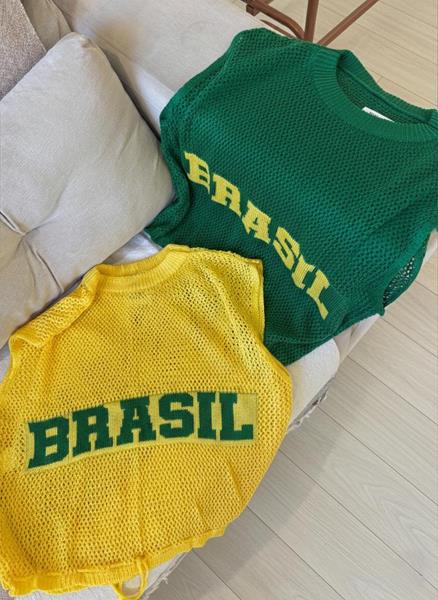 Eleve o seu look casual com a peça que é o hit da estação! Nossa regata cropped em tricô apresenta uma trama telada leve e moderna, ideal para compor produções cheias de personalidade. Com a escrita "BRASIL" em destaque, esta peça é perfeita para torcer, viajar ou simplesmente curtir o dia com um visual autêntico e vibrante.