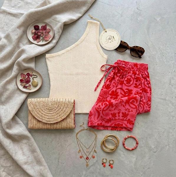 | SHORTS DE ESTAMPA EXCLUSIVA | TONS DE ROSA E VERMELHO |